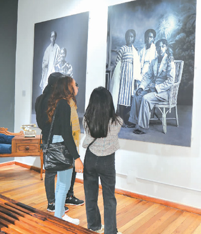 近日,在位于马达加斯加首都塔那那利佛的照片博物馆,当地学生参观马达加斯加传统服饰图片展。