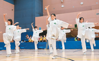 庆祝香港回归祖国26周年“尊重杯”校际武艺操大赛近日于香港举行,逾400名中小学生及特殊学校学生参与。赛事体现了香港新一代学生的精气神,通过推广中国武艺来增强青年体质、培养青年品德并促进文化自信。图为学生在比赛中展示武艺操。