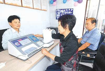 5月25日,在浙江省诸暨市姚江镇的镇级居家养老中心内,老人在测量血压。姚江镇将乡镇“一老一小”生活需求纳入保障重点,积极完善“一老一小”服务场景,服务乡村百姓民生,目前已建成投入使用1个镇级居家养老服务中心、28个村级居家养老服务中心;还建成镇级暖心小屋3个,平均每月为1000余人次提供留观、托育等服务。 |