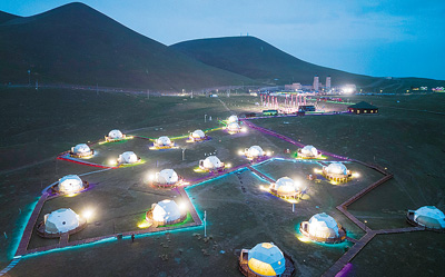 环塔拉力赛昆仑天路赛段篝火晚会在新疆和田策勒县板兰格景区举办,图为景区星空营地。 |