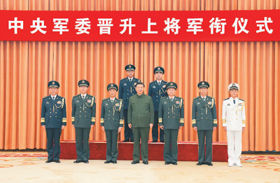 7月31日,中央军委晋升上将军衔仪式在北京八一大楼举行。中央军委主席习近平出席晋衔仪式。这是习近平等领导同志同晋升上将军衔的军官合影。 |