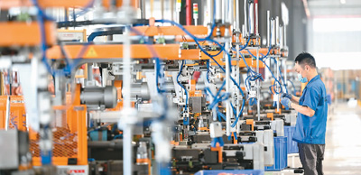 工人在广西壮族自治区柳州市柳江区一家空调企业的生产车间内忙碌。 |
