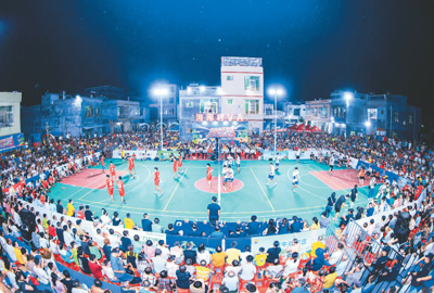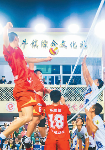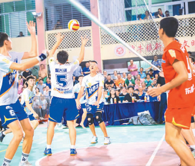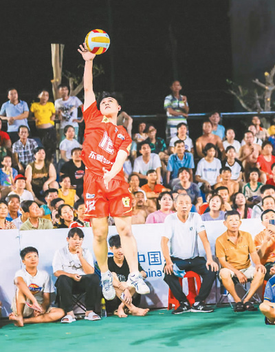 “加油!加油!”乡村排球场边,里三层、外三层的观众席呐喊声此起彼伏。场地内,主攻手高高跃起,用力扣球!落地得分,现场欢呼更甚……