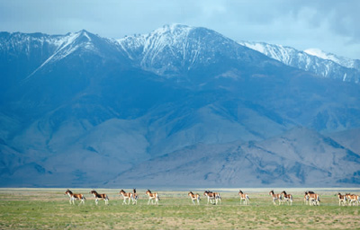 在新疆阿尔金山国家级自然保护区,藏野驴与远处的高山构成一幅美丽的画卷。 |