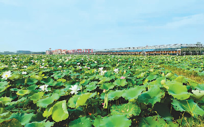 前来赏荷的人,哪个不是怡然自得?卖莲子的人,是村里的大嫂,丰收的喜悦写在她们的脸上。看,一列小火车在荷田中奔驰,游客们坐在车上笑得多么自在,美好的风景不就是在这路上?