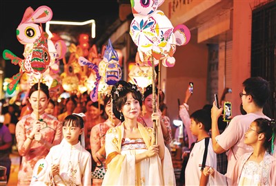 9月28日,花灯表演队伍在安徽省黄山市黟县宏村巡游。 施亚磊摄(人民视觉)