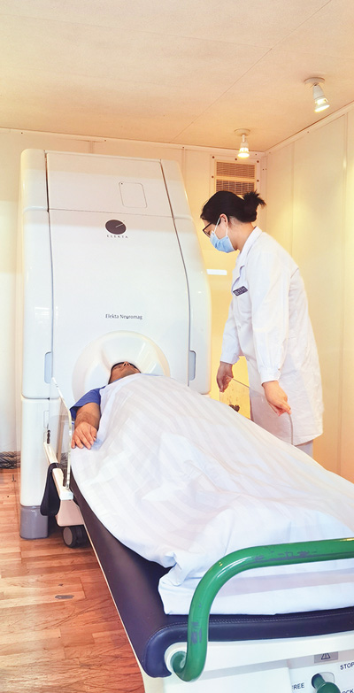 图为神经内科技师正在对患者进行脑磁图监测。 |