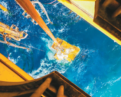 图为“深海一号”二期工程深水水下采油树入水瞬间。 中国海油供图