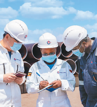 田雨介绍,大家伙在做好项目的同时,总是尽可能多帮助当地。早在2015年,公司在翠鸟油田周边修建了当地第一条跨崖公路,10公里长的道路连通沿路村庄,彻底改变了当地人以乘船和爬山为主的出行方式,“去医疗点、上集市,再也不用跋山涉水了。”公路投用多年之后,去年初,翠鸟油田项目首批大宗物资——65根钻井导管也通过这条公路运抵现场。公司援建的布胡卡引水工程,向布胡卡地区1.3万多居民供应日常清洁用水,人们终于不再跨崖数公里到山顶用桶取水。