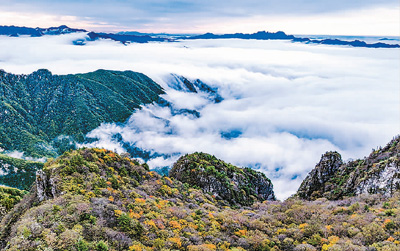 雨后初晴的陕西秦岭牛背梁国家森林公园出现云海奇观,山峰在云海中若隐若现,美不胜收。 |