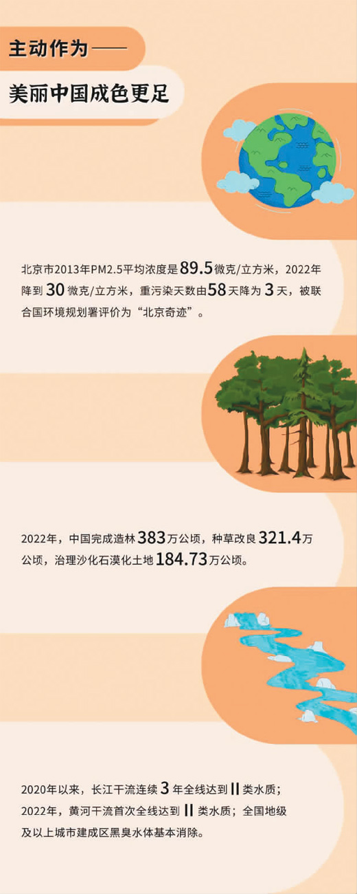 主动作为也体现在社会层面。进入新时代,伴随着人民群众对清新空气、清澈水质、清洁环境等生态产品的需求越来越迫切,生态文明理念也不断深入人心,建设美丽中国正转化为全体人民的自觉行动。