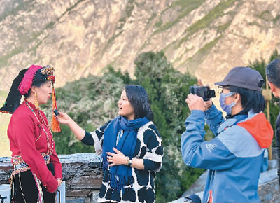 深秋的甘孜州丹巴县美人谷,高山峡谷层林尽染,藏寨田园一片金黄。当采访团走进丹巴县甲居藏寨,热情的藏族村民们挽起台湾青年的手臂,帮她们换上藏装,拉起七彩裙摆,一起跳起了锅庄舞。