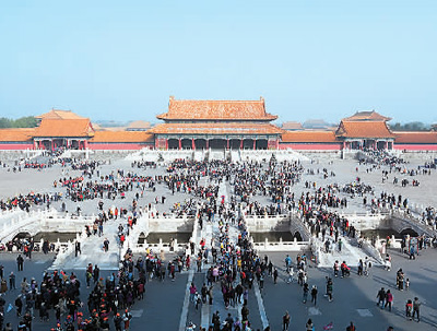 图二:10月24日,游客在北京故宫太和门广场参观。 |
