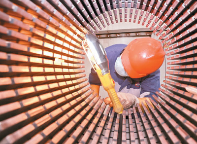 工人在江苏省南通通达矽钢冲压科技有限公司生产车间忙碌。 |