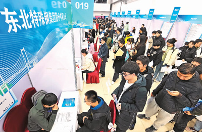 图为众多青年学子在中国沈阳人力资源服务产业园参与大连市举办的沈阳专场招聘会。