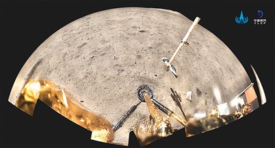 嫦娥五号探测器在月球表面展示国旗。 |