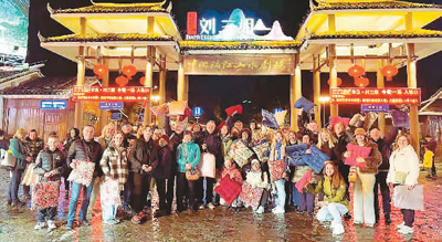 元旦假期,俄罗斯游客在桂林阳朔观看演出《印象刘三姐》后合影留念。 |