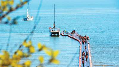 游客在秦皇岛市北戴河区乘坐游船出海观光。 |