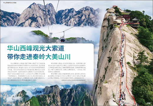 乘坐西峰大索道,享受轻松便捷之旅。搭乘西峰大索道,18分钟可直抵华山主峰区,让游客有充足的时间领略华山西峰莲花峰的秀丽、南峰落雁峰的险峻、东峰朝阳峰的瑰丽、中峰玉女峰的传奇、北峰云台峰的雄奇,一天时间,尽情欣赏华山奇峰妙景。