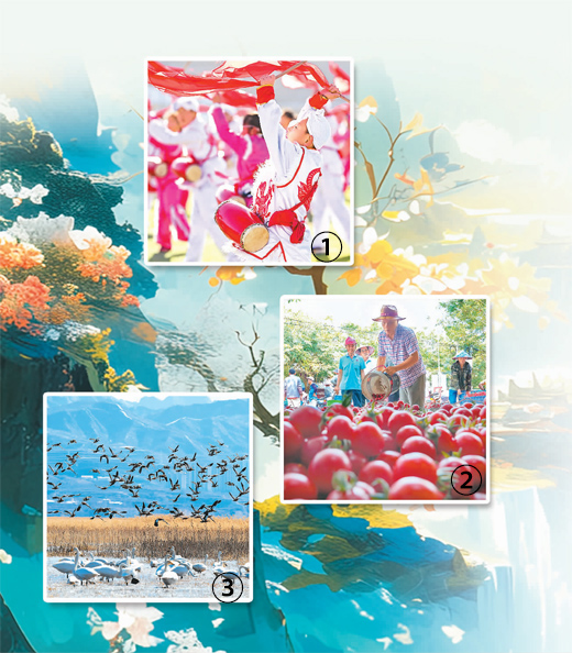 图①:内蒙古自治区鄂尔多斯市鄂托克前旗第二小学的学生在表演安塞腰鼓。 |