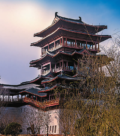 “为体现时代发展,确保功能适用,锦云楼在设计时将斗拱、门窗等进行简化提炼,以层叠的线条组团替代斗拱、以全玻幕墙替代直棱窗等,形态简洁又不失风格。”成都世园会执委会建设管理部专职副部长杨敏向记者介绍设计理念。
