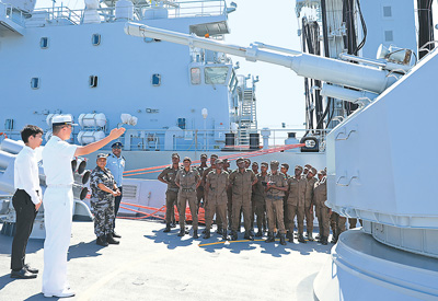 图为莫桑比克官兵参观中国海军第四十五批护航编队临沂舰。 |