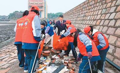 近年来,浙江省温岭市检察院联合职能部门整合本地乡土资源,开发“研学+普法+志愿活动”模式,推广“公益研学”,让公益诉讼创新实践基地成为学生法治教育的“第二课堂”。图为4月6日,在一场以“守护海洋”为主题的环保研学活动中,人大代表、检察官与学生捡拾近岸海洋垃圾。
