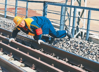 “这里夏季气温高达40摄氏度,冬季最低气温会降至零下30摄氏度,即使在同一季节,昼夜温差也在25摄氏度以上,梁体、轨道因此会出现热胀冷缩现象,加之重载货物列车的反复碾压挠曲、制动摩擦,铁路轨道几何尺寸变化幅度大、周期短,需要不间断维修养护,将轨道各项技术指标控制在允许误差范围之内,以确保设备安全、运输畅通。”杨建平说。