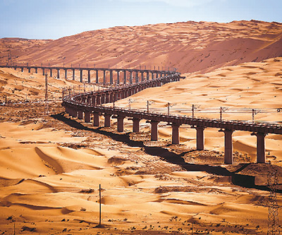 位于沙漠中的沙山沟特大桥。 |