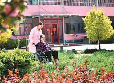 河北省邢台市威县近年推进多元化农村养老服务体系,依托养老机构设立居家养老关爱服务中心,通过医疗与养老资源整合,为农村老人提供助餐、助医、助乐等服务,提高农村健康养老服务能力。图为4月16日,威县三益庄村一家养老机构内,工作人员在陪护老人。