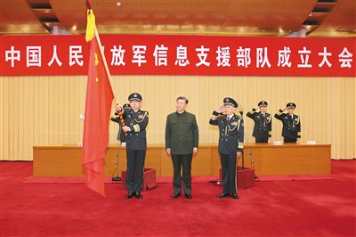 新华社北京4月19日电 (记者梅常伟)中国人民解放军信息支援部队成立大会19日在北京八一大楼隆重举行。中共中央总书记、国家主席、中央军委主席习近平向信息支援部队授予军旗并致训词,代表党中央和中央军委向信息支援部队全体官兵致以热烈祝贺。他强调,要贯彻新时代强军思想,贯彻新时代军事战略方针,坚持政治建军、改革强军、科技强军、人才强军、依法治军,聚焦备战打仗,按照体系融合、全域支撑的战略要求,锐意进取,扎实工作,努力建设一支强大的现代化信息支援部队。