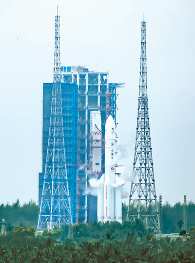 图为5月3日17时27分,嫦娥六号探测器由长征五号遥八运载火箭在中国文昌航天发射场发射。 |
