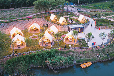 河北省邯郸市复兴区依托生态环境和城市近郊区位优势,通过“农村合作社+公司+农户”模式发展露营经济,已建成规模以上露营基地10余个,可同时满足1000多名游客露营需求,带动乡村民宿、采摘、垂钓等旅游业态发展。图为游客体验复兴区康庄乡中庄村的露营基地。