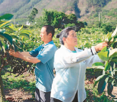高丰村村民在给枇杷树定枝。 |