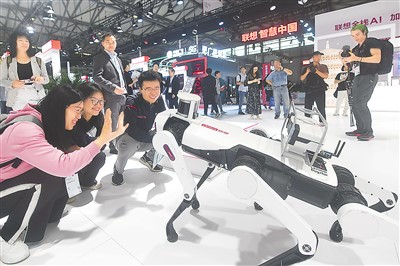 观众在展会上与智能机器狗互动。 龙 巍摄(人民图片)