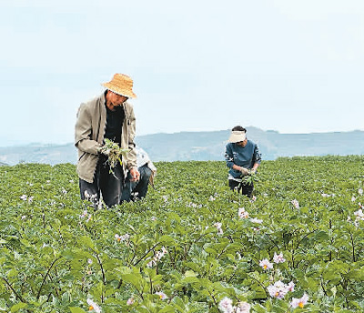 蔡家堡乡农民在洋芋地里劳作。 |
