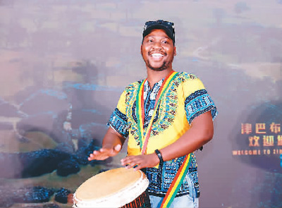 津巴布韦青年李帅在活动中表演非洲鼓。 |
