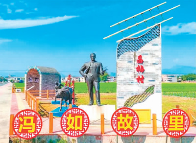冯如故居坐落在牛江镇昌梅村的杏圃自然村。从沈海高速公路的牛江出口匝道转入乡村公路,一片美妙的珠三角乡间景色——碧绿盎然的稻田、错落有致的田间池塘与梳式布局的村落,还有远方隐约的逶迤山陵映入眼帘。行进两公里后,洁净的乡村水泥路旁便看到欢迎牌亭。栩栩如生的冯如雕塑旁,是青砖砌垒的花式标示牌,牌顶上是“冯如二号”的飞机模型。