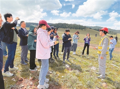 图为国家电投四川甘孜州兴川能源投资开发有限公司管理人员为两岸媒体记者介绍情况。 |