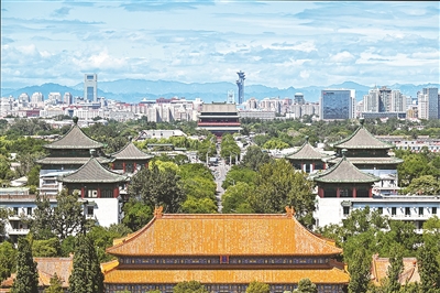 8月12日,从景山上沿北京中轴线向北眺望鼓楼。 |