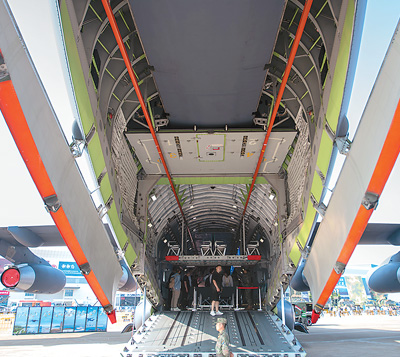 11月12日,参观者正在运-20机舱参观。 |