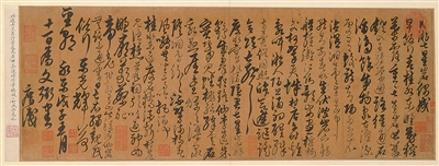文人墨客笔下关于游宴的诗文画作,也构成了博大宏富的中华饮食文化。来到展厅另一边,蒋得庄指着解缙所作的草书《游七星岩诗》说:“他在诗中提到‘柳莺满树春风啭,共坐高吟把酒闻’,可见当时解缙是带酒出游的。”