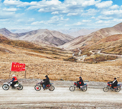 正值虫草采挖期,青海省果洛藏族自治州玛沁县组织各村在虫草采挖点设立党员服务点,抽调各包村干部、村两委干部、驻村工作队队员、新时代文明实践站志愿者等开展巡护,引导群众有序采挖、安全生产。图为5月18日,玛沁县东倾沟乡东柯河村党员行进在巡护路上。