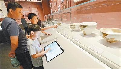 河南郑州,大河村遗址博物馆新馆,观众在了解仰韶文化中期代表性遗存。