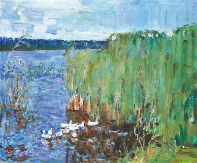 油画《白洋淀》,作者郑光旭。