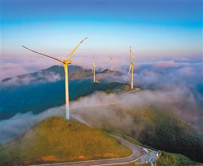 近年来,黔南布依族苗族自治州依托风、光等资源优势,成为贵州省重要的清洁能源基地之一。南方电网贵州都匀供电局主动提供技术支持,确保相关项目按期完成并网,推进新型电力系统建设,努力提升清洁能源消纳能力,助力实现“双碳”目标。图为一处风电场。