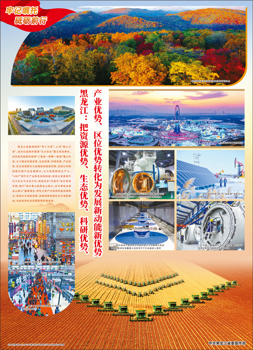黑龙江省始终胸怀“两个大局”、心系“国之大者”,坚决扛起维护国家“五大安全”重大政治责任,切实肩负起建好建强“三基地一屏障一高地”重大任务,大力推动资源优势、生态优势、科研优势、产业优势、区位优势转化为发展新动能新优势,坚持以科技创新引领产业全面振兴,大力发展新质生产力,“4567”现代化产业体系加快构建;坚持以发展现代化大农业为主攻方向,粮食安全“压舱石”地位更加牢固;践行“绿水青山就是金山银山、冰天雪地也是金山银山”重要理念,特色文旅产业保持旺盛发展势头;坚持以开放促发展,加快构筑我国向北开放新高地,全省经济社会发展取得积极成效。
