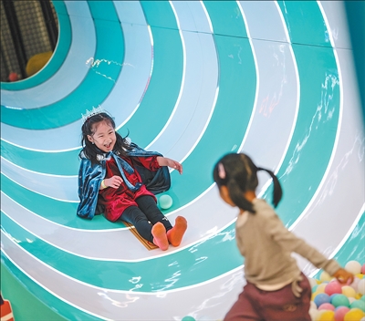 10月8日,辽宁沈阳粮仓文化创意产业园,小朋友在游乐场体验游乐项目。