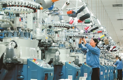新春伊始,山东省青岛市即墨区企业开足马力赶订单、保生产、抢市场,全力冲刺新春“开门红”。图为2月4日,即墨区通济街道一家制袜企业的工人在生产出口订单产品。