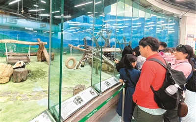 大熊猫是台北动物园的“顶流明星”,每天都引来满满的参观人潮。熊猫馆专设的纪念品商店,贩售各种大熊猫主题商品,也成为岛内民众和外来游客的必到之处。